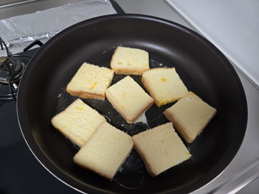 バターを入れて溶かし、そこに食パンを入れましょう。