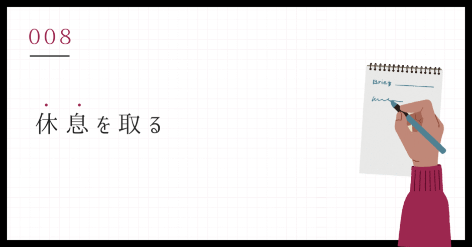休息の本質は、主体的に「休むことを選ぶ」点にあります。疲れたから休むのではなく、最高の自分を発揮するために休む。そうした意識の転換こそが、成果を安定的に生み出す鍵になります。
